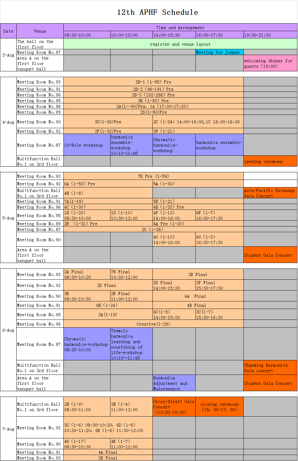 Note: 12th APHF organizing committee has the right to adjust the schedule