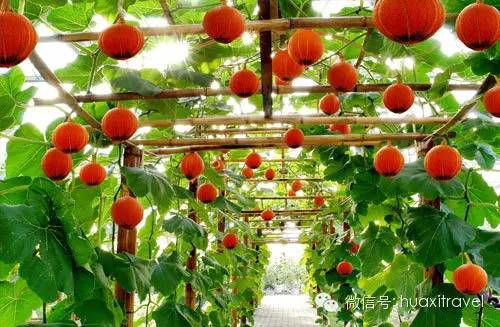 Through the Huaxi tunnel, visit Huaxi mountain north high tech Ecological Park: there are more than 100 kilometres of giant pumpkins, gourds with unique shapes, bright colored peppers, bergamot melons, banana trees with large and thick leaves all Precious fruits and vegetables .