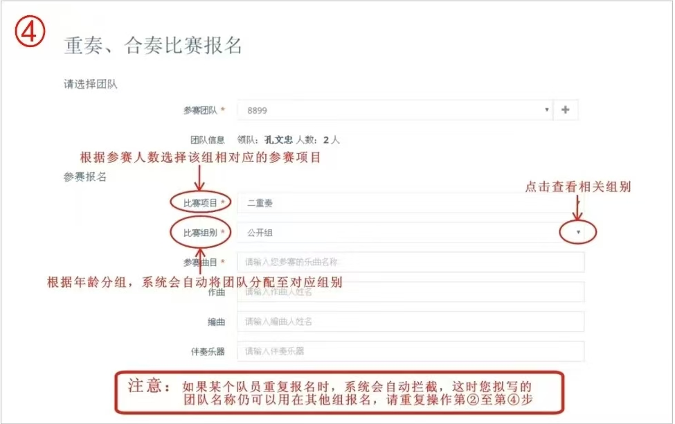 重奏、合奏报名: 第一步:重奏、合奏报名点击“重奏、合奏”