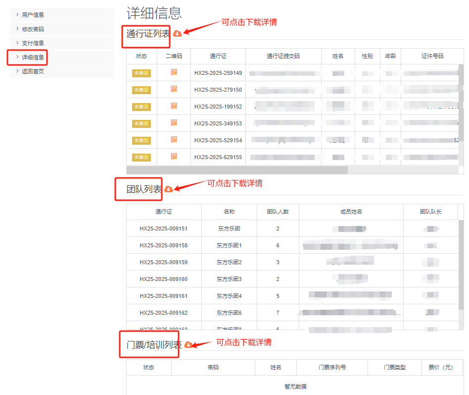 第三步:完成付款后,您可以回到报名首页,在“我的信息”→“详细信息”查看已报名详情,点击“下载”按钮可下载报名详情。