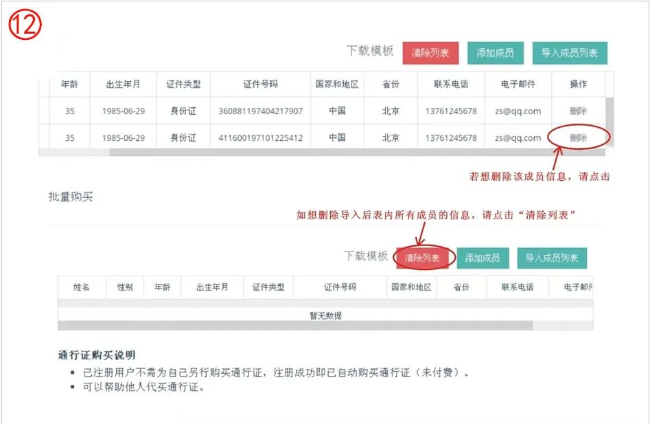 第十二步:如想删除成员信息,可点击该成员对应的“删除”按钮,如想删除所有成员,点击“清除列表”