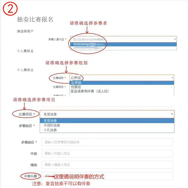 第二步:按要求填写您的独奏报名资料。