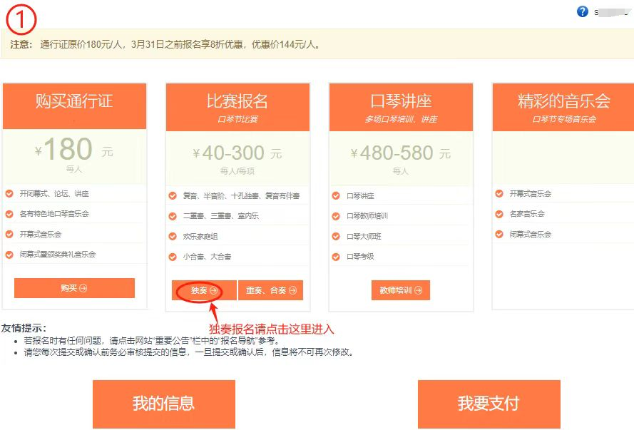 独奏报名: 第一步:独奏报名,点击 “独奏”。