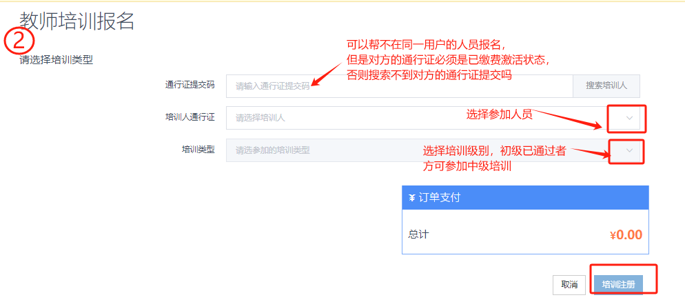 第二部:选择参加培训人员和培训级别,然后提交。