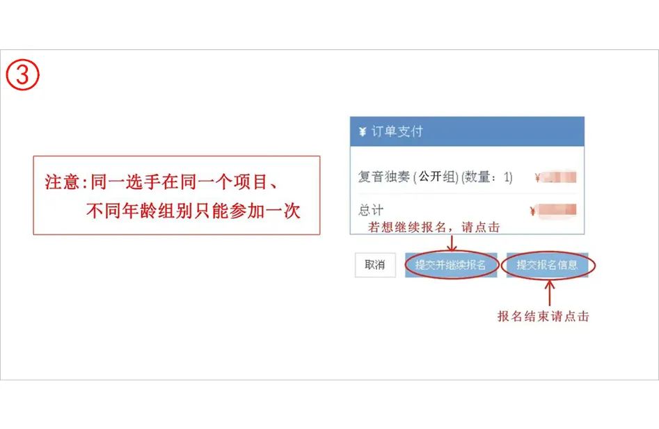 第五步:完成报名点击“提交信息”,如果需要继续报名,点击“提交并继续报名”