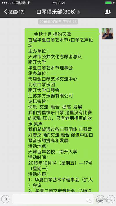 并于9月初建立专门的微信群 华夏口琴节论坛