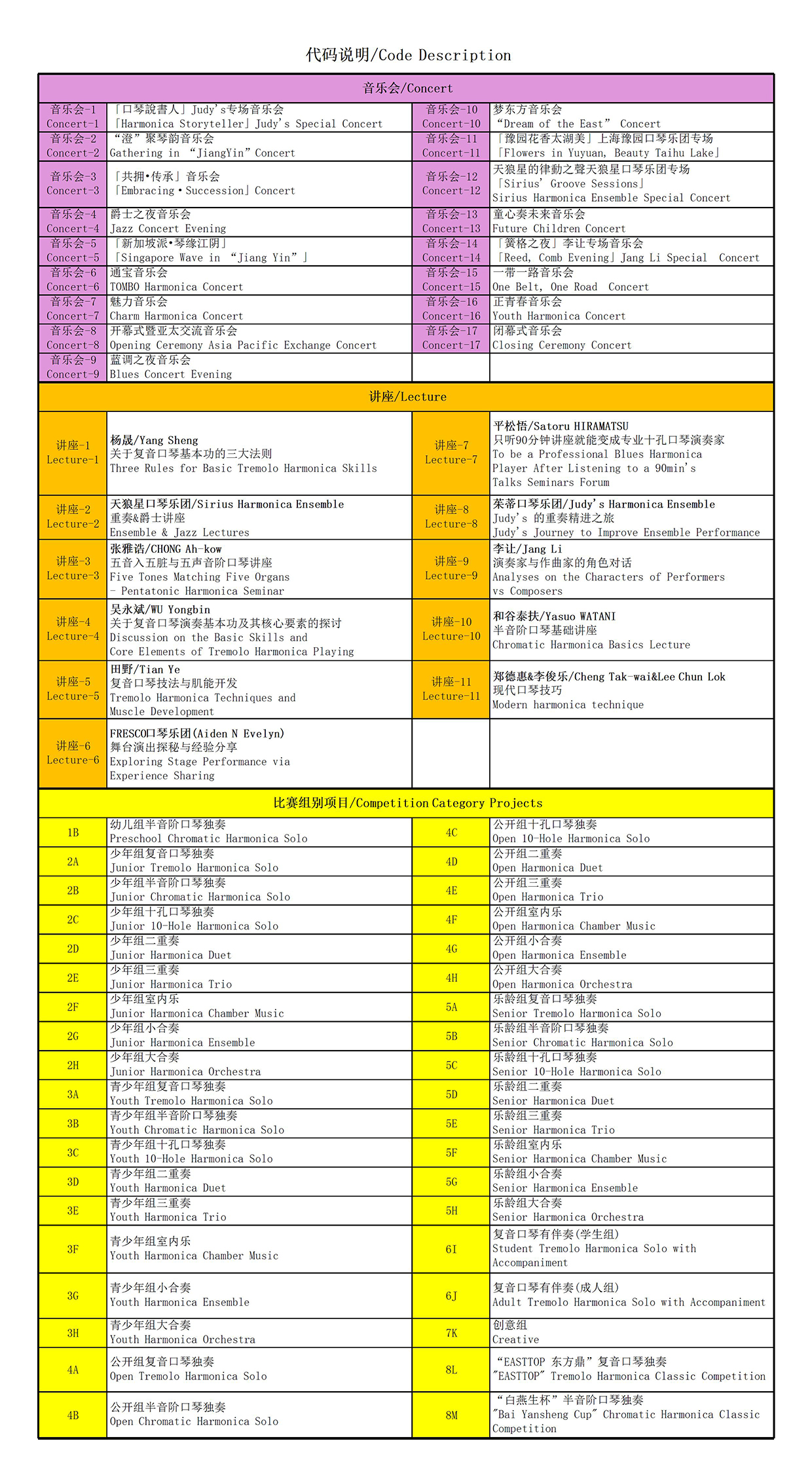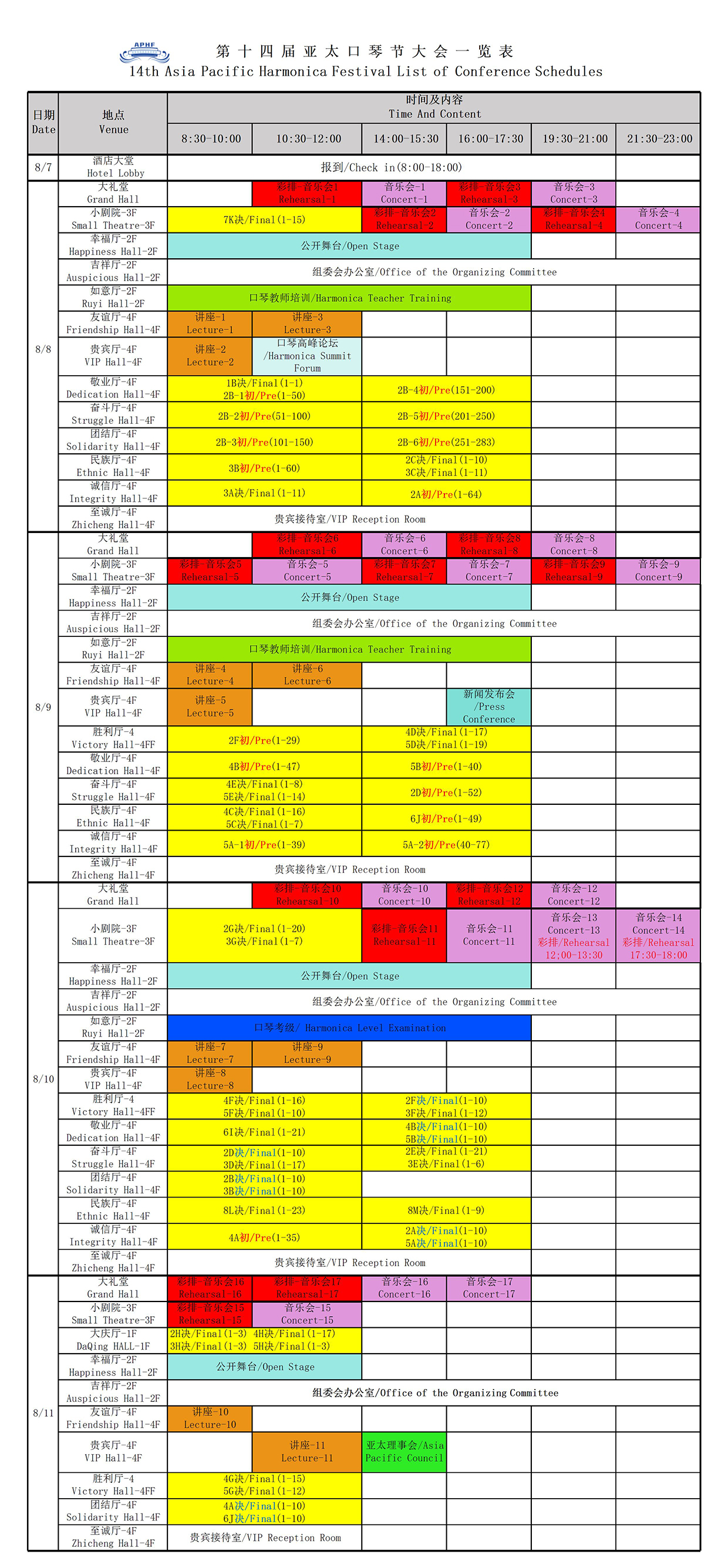 第十四届亚太口琴节大会 一活动日程表